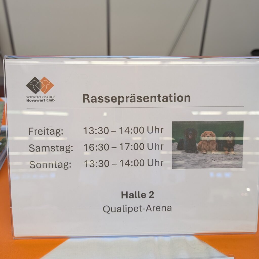 An der Rassepräsentation zeigten sich die Hovawarte mit den dazugehörenden Menschen dem interessierten Publikum. Gleichzeitig wurden die wesentlichsten Informationen zum Ursprung des Hovawarts, zum Rassestandards, zur Gesundheit und ebenso über das Zuchtwesen vermittelt. Aber vor allem auch Auskünfte erläutert zu den Fragen: Was ist ein hovigerechter Lebensplatz? Was braucht ein Hovawart, damit er glücklich ist?