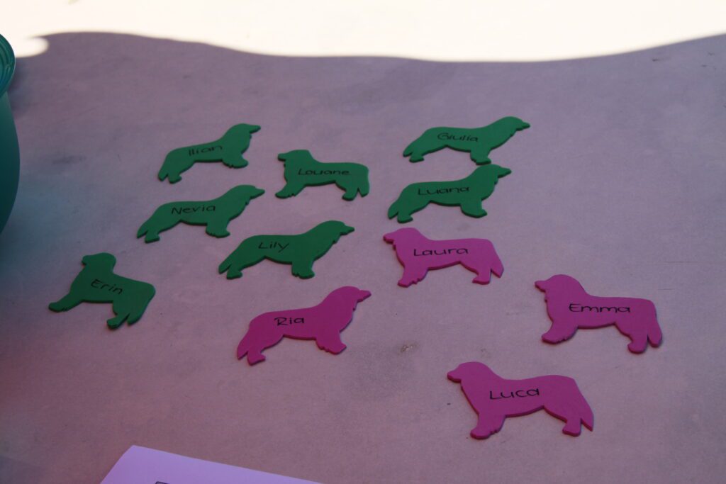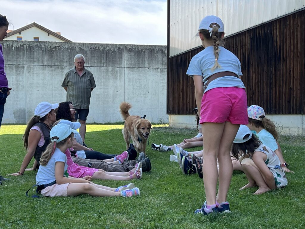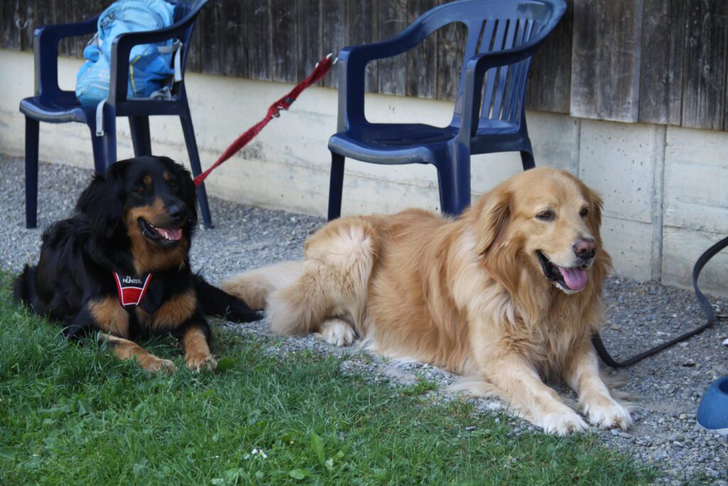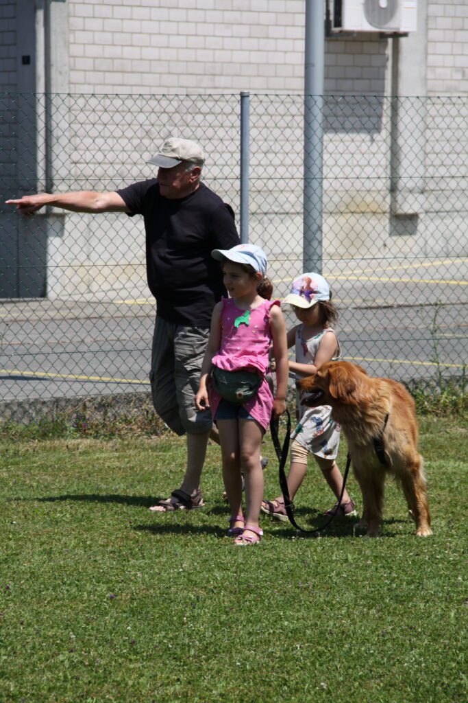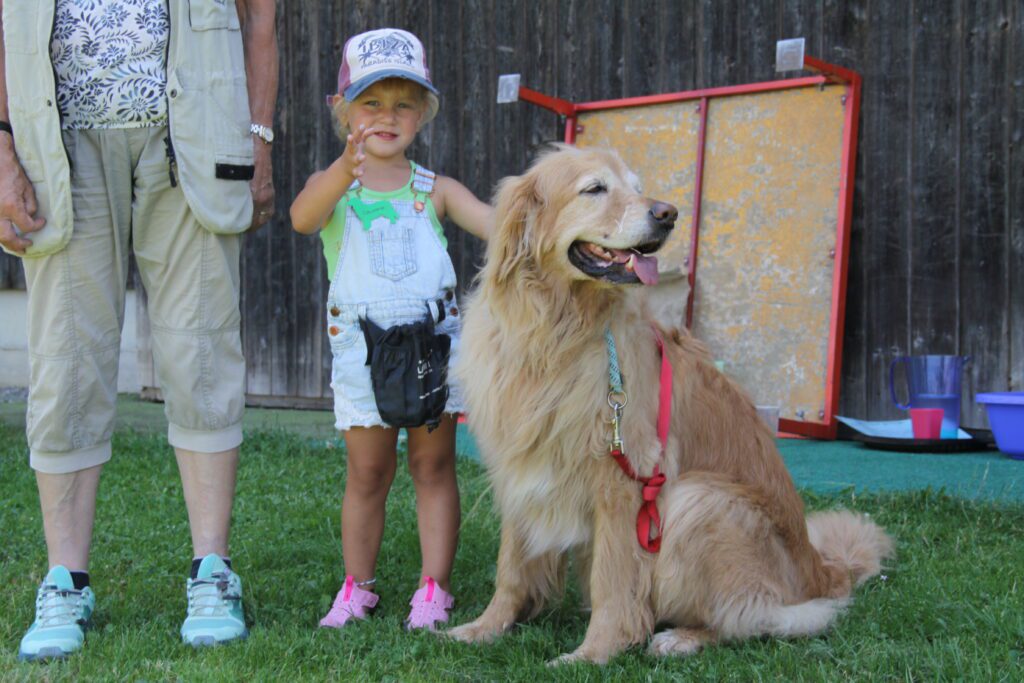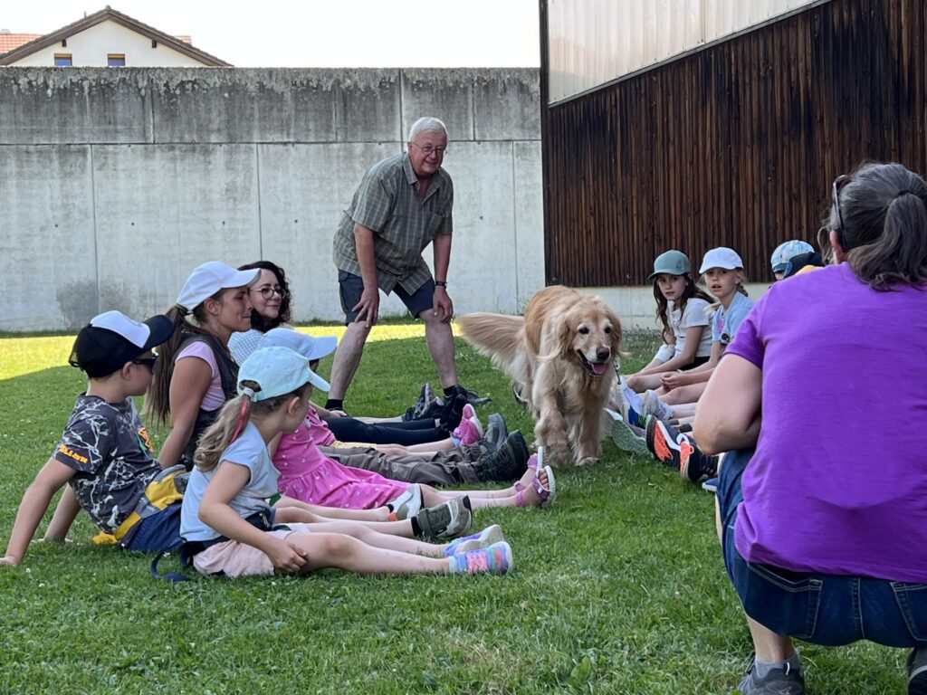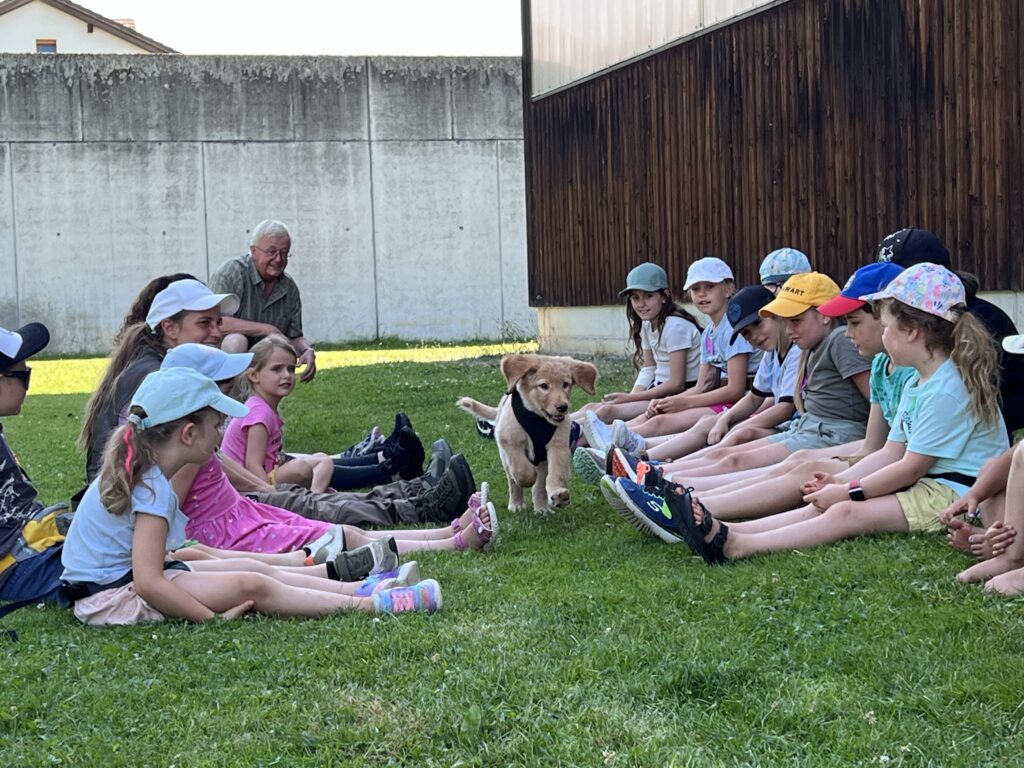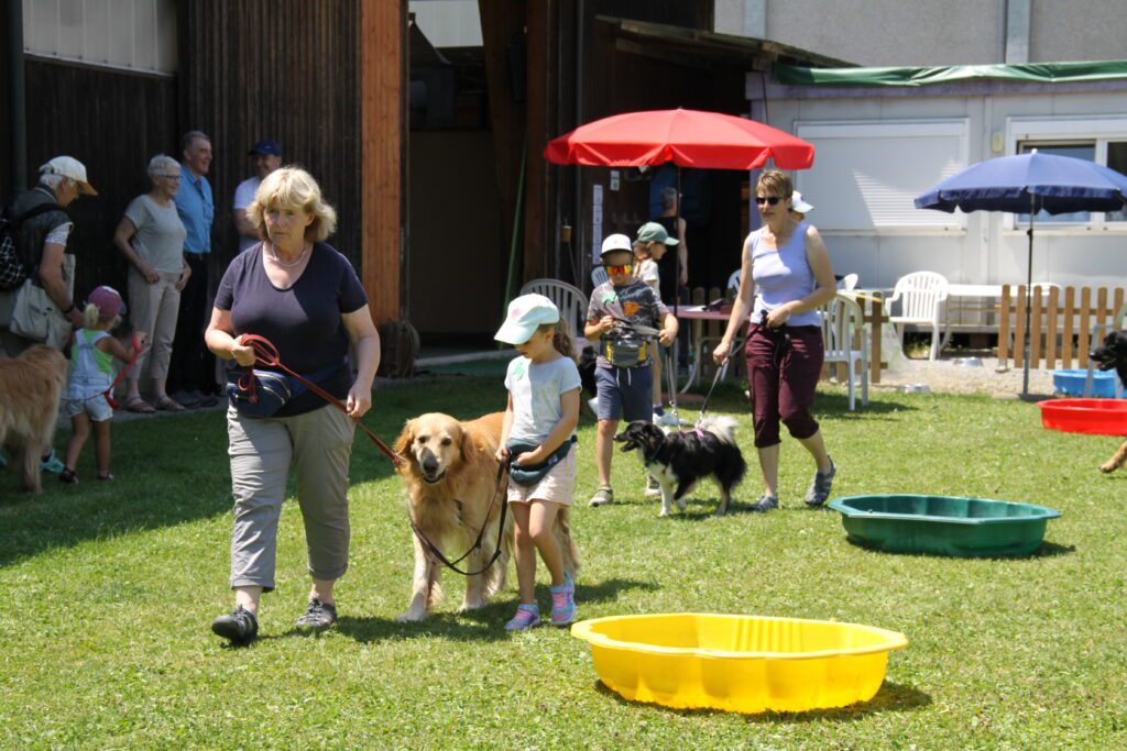 Nach dem Zvieri und vielen kühlen Getränken fand der Anlass mit einem Abrufen der Hunde zwischen den sitzenden Kindern hindurch seinen Abschluss. Zum Abschied und als Erinnerung an diesen tollen Nachmittag erhielten die Kinder eine selbstgenähte Stofftasche mit lustigen Hundemotiven. Die Belohnung für die Erwachsenen waren die leuchtenden Augen in den von Schweiss glänzenden Kindergesichtern.