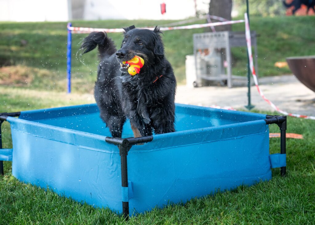 Nach dieser spannungsgeladenen Verbrecherjagd duften sich die Diensthunde bei spassigen Posten wieder entspannen und vor allem in den verschiedenen Plantschbecken abkühlen! Hier wurden von Andrea Baumgartner auch professionelle Fotos geschossen (diese können hier angeschaut und bestellt werden).