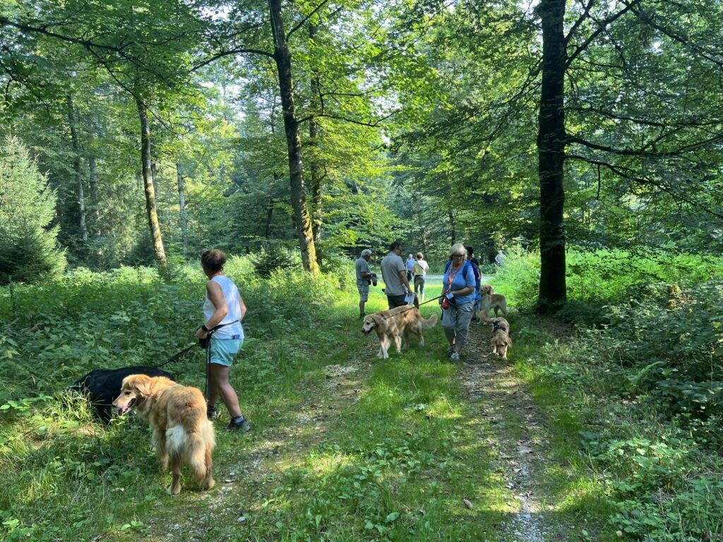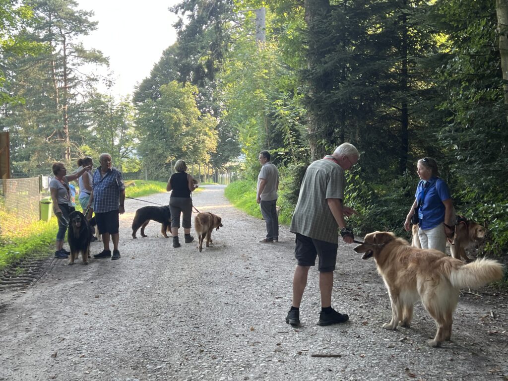 Am 16. August 2025, einem schwül-heissen Hochsommertag, fanden sich rund 40 Kommissare mit ihren Diensthunden in Niederbipp ein, um den Fall zu klären und dem Dieb oder Versicherungsbetrüger auf die Schliche zu kommen. Nach einem kurzen Breefing im Hauptquartier durch zwei versierte Hauptkommissare, durchstreiften die Kommissare mit ihren Diensthunden - interessanterweise fast alles Hovawarte - den nahegelegenen Wald auf der Suche nach Beweisstücken. Sie wurden bald fündig, den Diensthunde-Nasen entgingen die mit Guddelis "verseuchten" Beweisstücke nicht. Schon bald erhärtete sich der Verdacht , dass es sich tatsächlich um einen dreisten Diebstahl handeln musste.